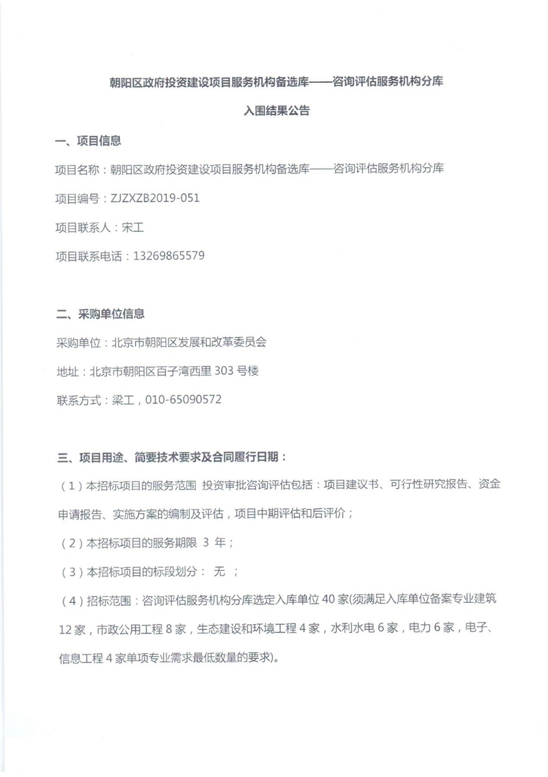 日前,中建精誠(chéng)再次入圍《朝陽區(qū)政府投資建設(shè)項(xiàng)目服務(wù)機(jī)構(gòu)備選庫-咨詢?cè)u(píng)估分庫》,非常榮幸能繼續(xù)為北京市朝陽區(qū)發(fā)展和改革委員會(huì)提供工程咨詢服務(wù)。公司將嚴(yán)格遵守法律法規(guī)、工程咨詢行業(yè)管理辦法,遵循循獨(dú)立、公正、科學(xué)的原則完成咨詢服務(wù)項(xiàng)目。