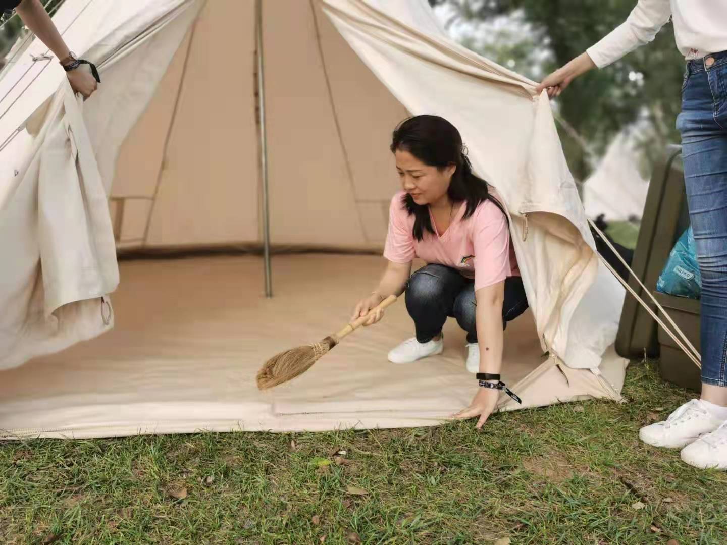 此次活動選擇了戶外露營,大家一起完成搭建帳篷的任務。到達營地后,營長講解了搭建帳篷的過程及各種工具的使用方式,在其指導下,大家對搭建工作進行了合理分工,齊心協力做好帳篷的固定及清掃工作,通過共同努力讓帳篷以最穩固、最安全、最干凈的方式展現在了大家的面前。搭建帳篷的過程體現了團隊的和諧與專注,展現了大家的齊心合作,鍥而不舍,追求卓越的精神。